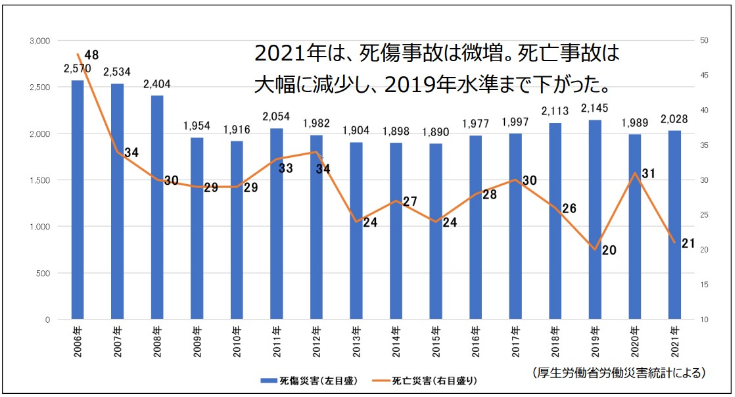 発生しています。各社、安全対策意識は年々高まっていると予想できますが、死傷事故件数は