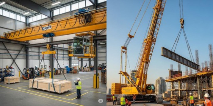 屋外では電線・建物・他の重機など、屋内では機械や他の荷物など、クレーンの旋回や移動、