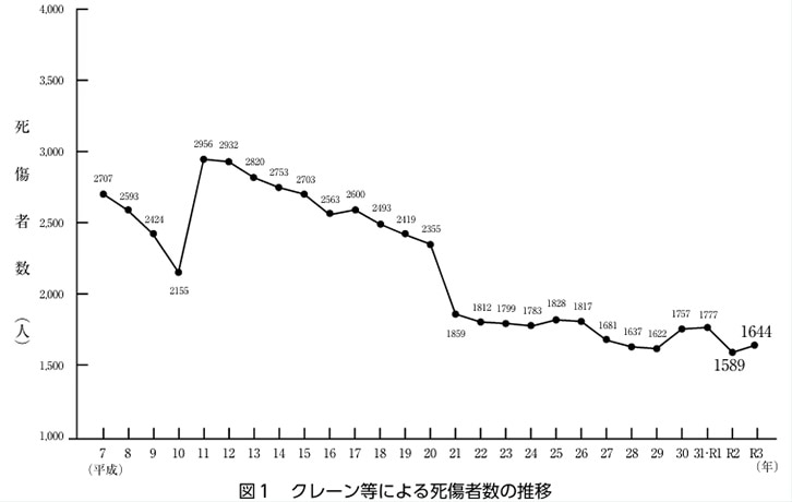 これまでにクレーン関連の事故で1,644人が死傷しています。