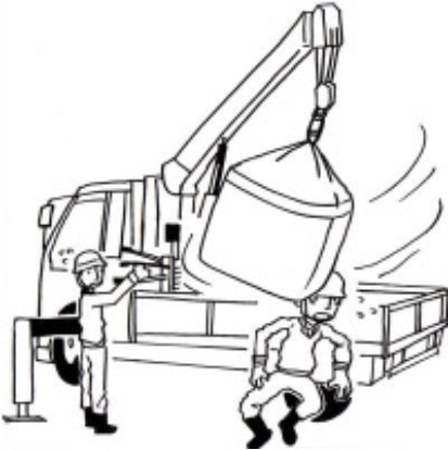 他の作業員も、荷が移動している間は、絶対に吊り荷の下や近くに立ち入らないようにする必要があります。