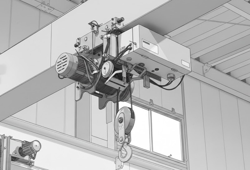 レールの上を走行させたり、クレーンの一部として組み込んだりすることで、広範囲の運搬を可能にします。