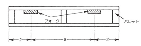 - フォークの取付けの間隔は、荷の横方向の安定性を保ち、荷による偏荷重を避けるため、車体中心からの