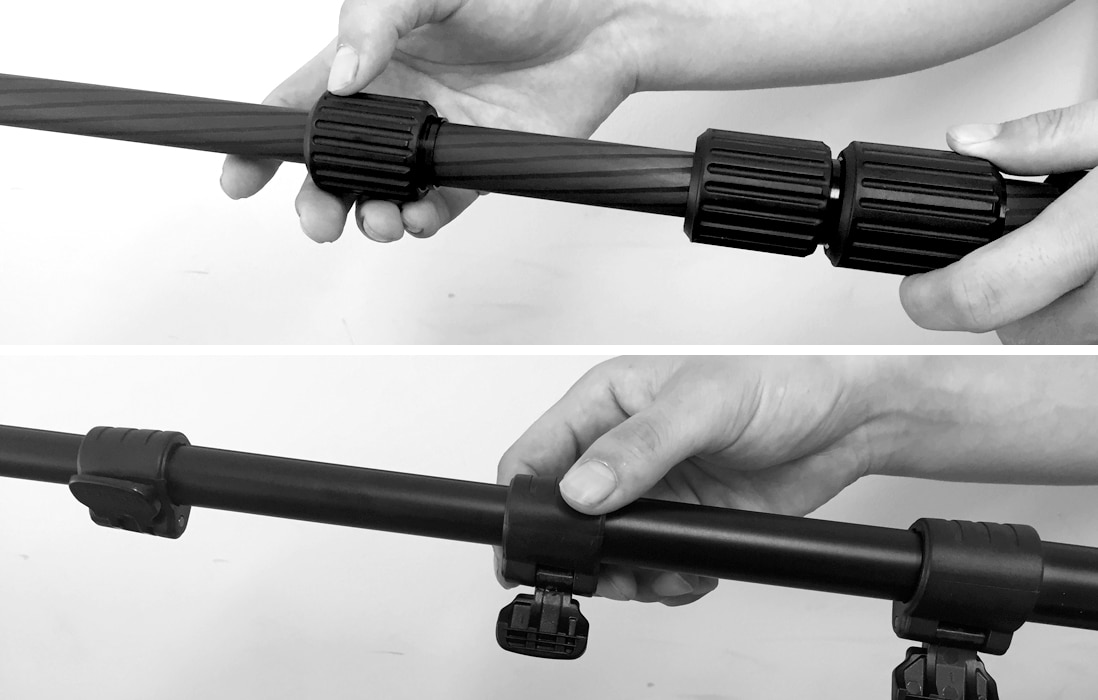 収納時(350㎜)から最大1070㎜まで、たった1秒で伸縮でき、好きな長さで固定できます。(特許技術)
