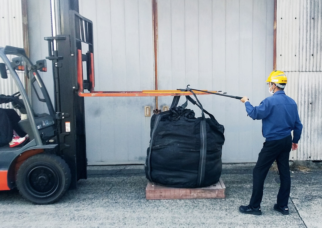 フレコンの紐を“押す・引く・持ち上げる”がしやすい先端形状を考案。