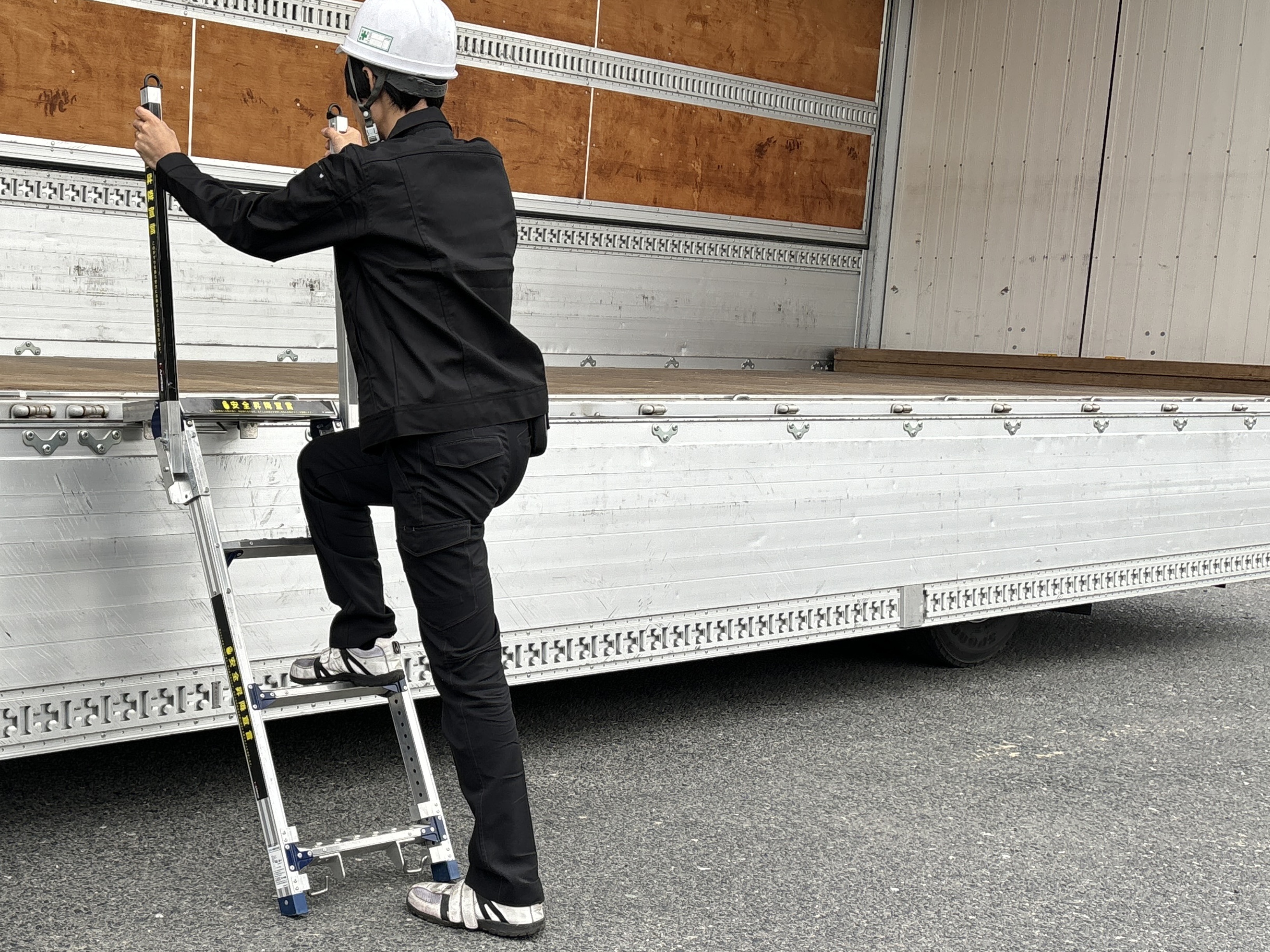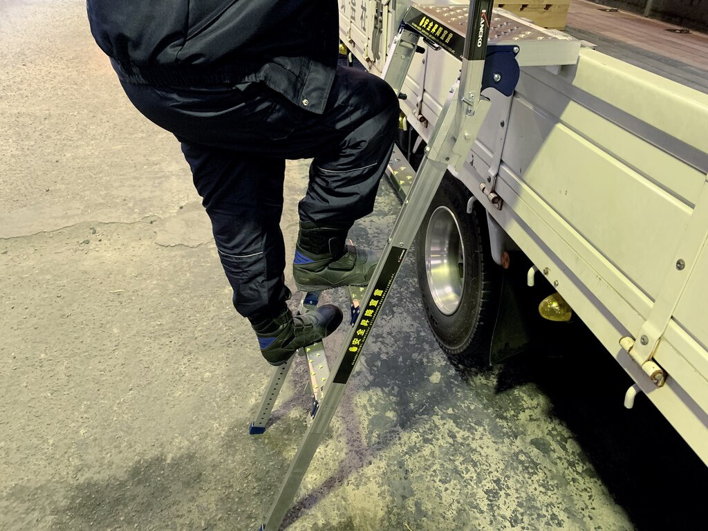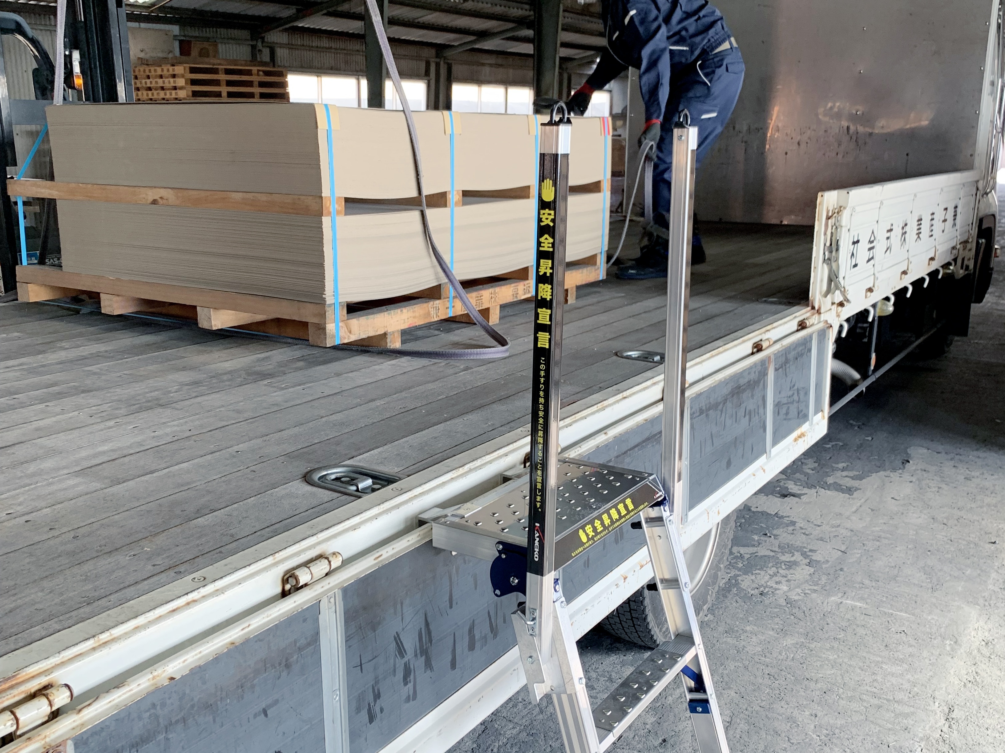 構内ルールとして昇降ステップの使用を徹底し 安全に昇降出来る環境を整える事が出来た。持ち運びが容易な為、運送業者の方からの評判も良好