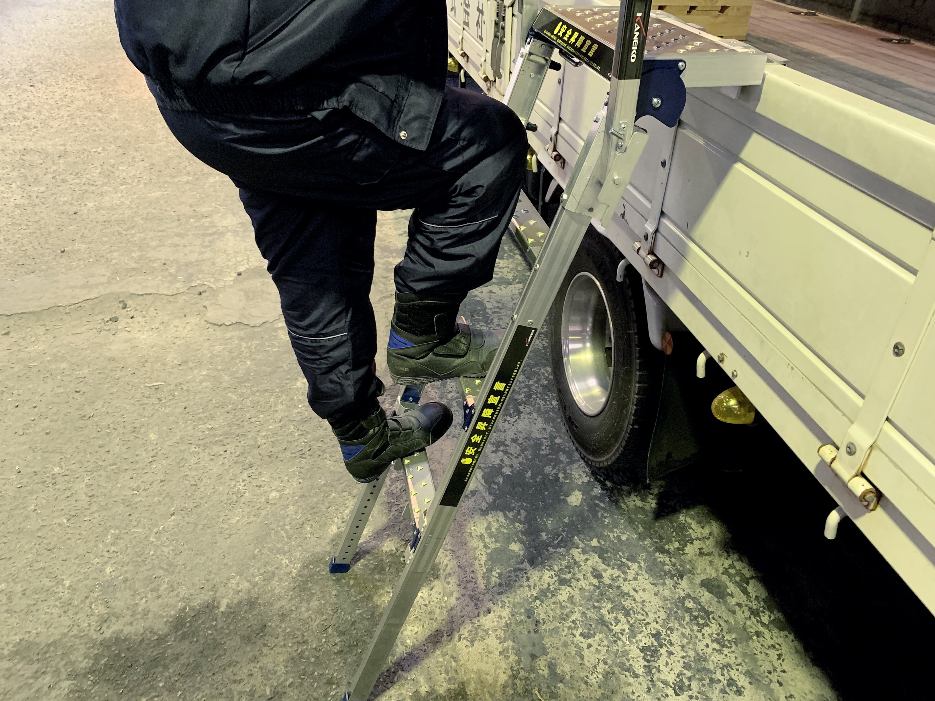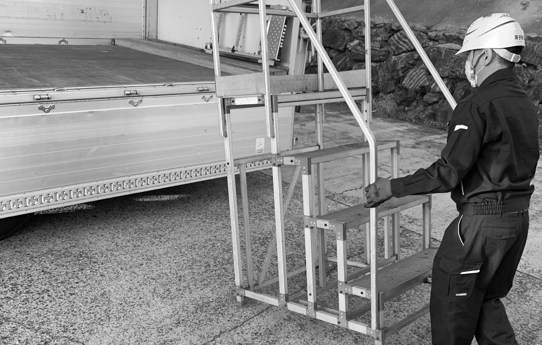 安全昇降ステップを使用して納品をしていると、お客様の目にも止まりやすく、印象が非常に良い。