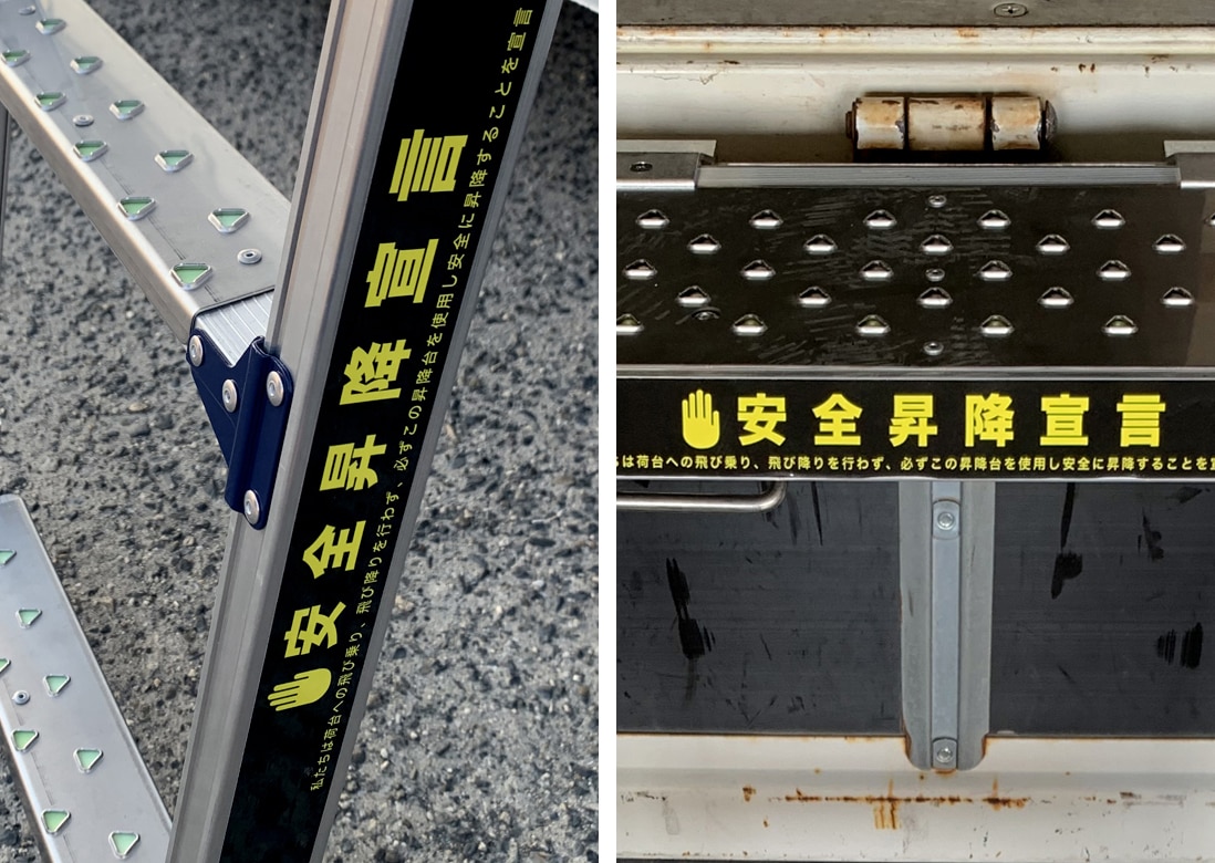 安全な昇降を“宣言する”ことで使用徹底を促し、納品先のお客様に自社の安全意識の高さを伝えることができます。