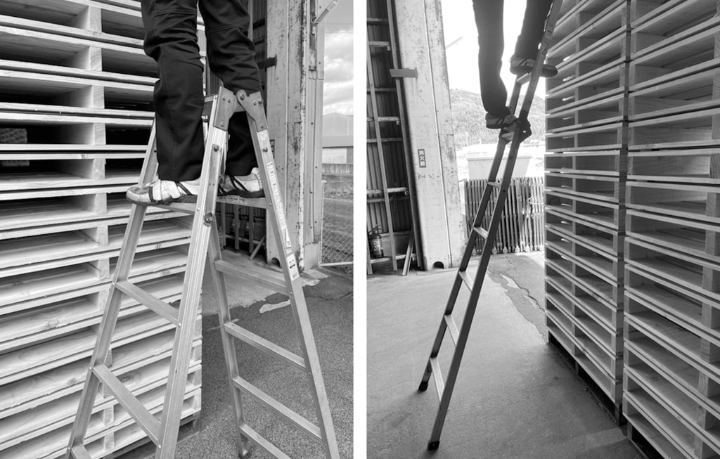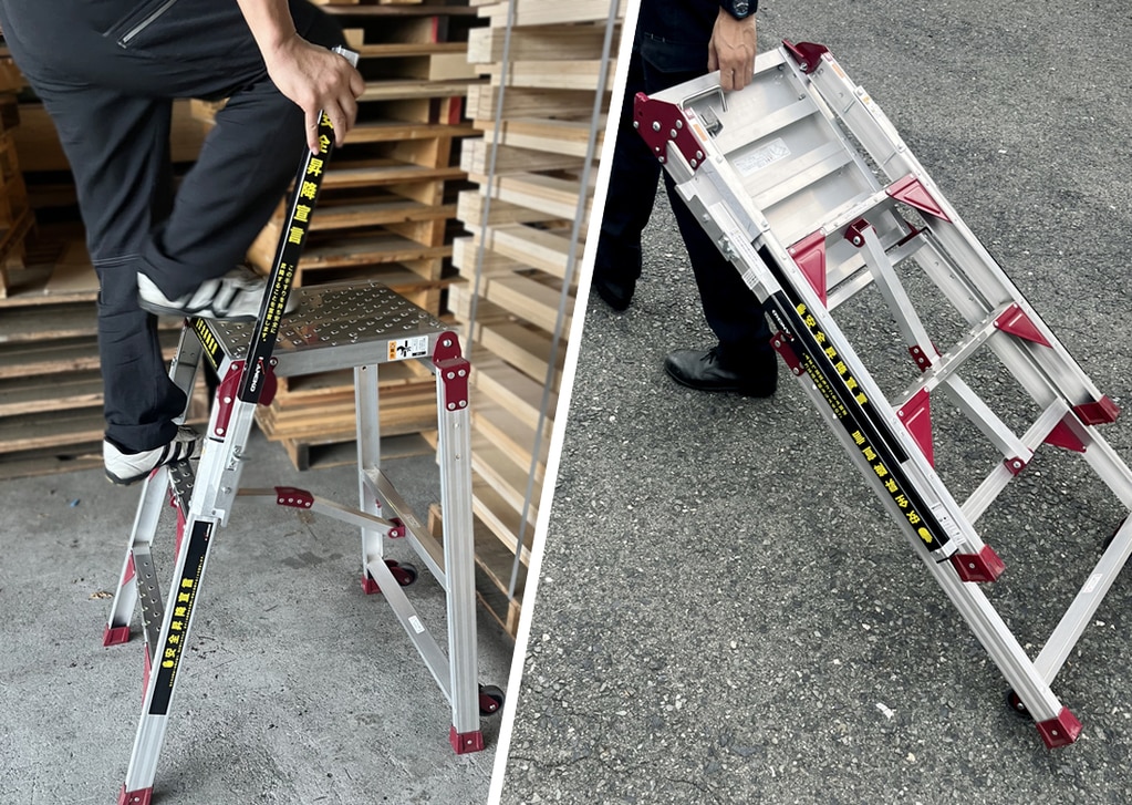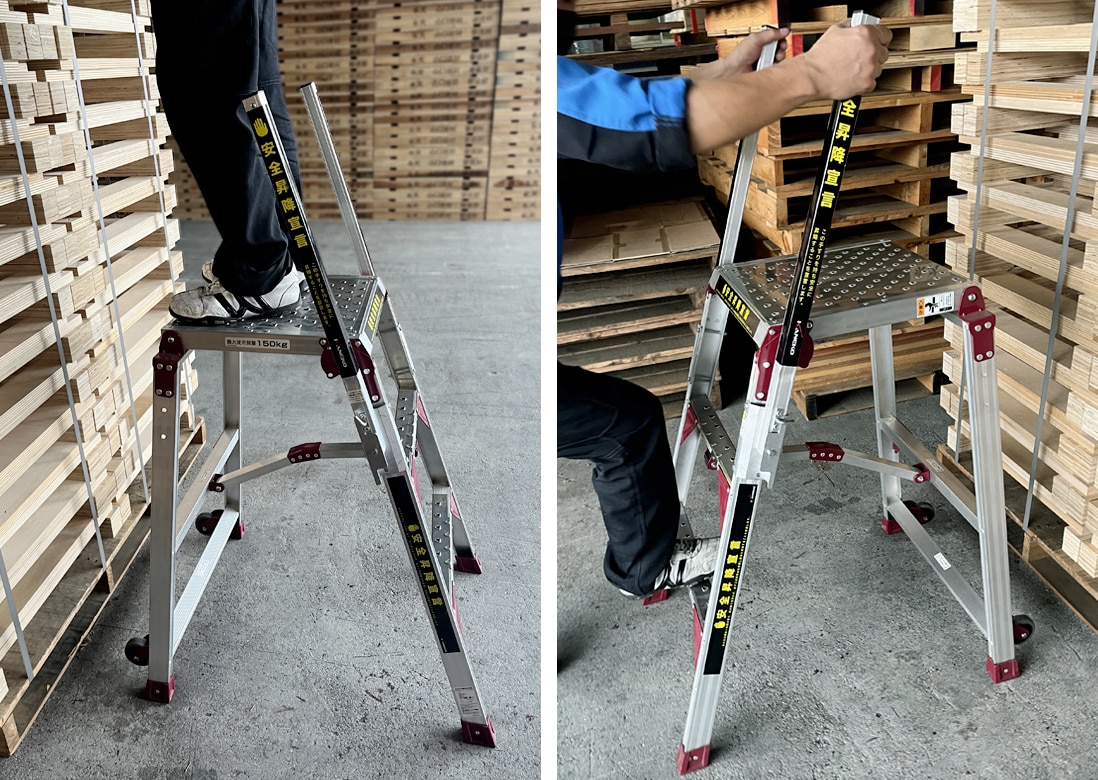 自立型で安定感抜群。手すりを両手でしっかり握って昇降できます。