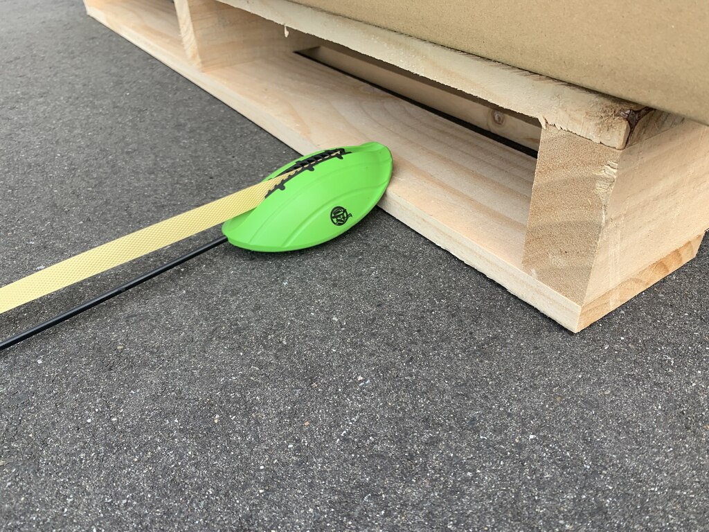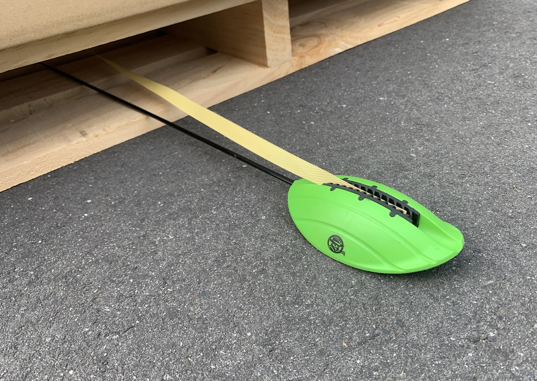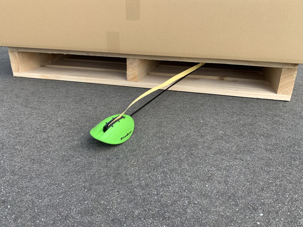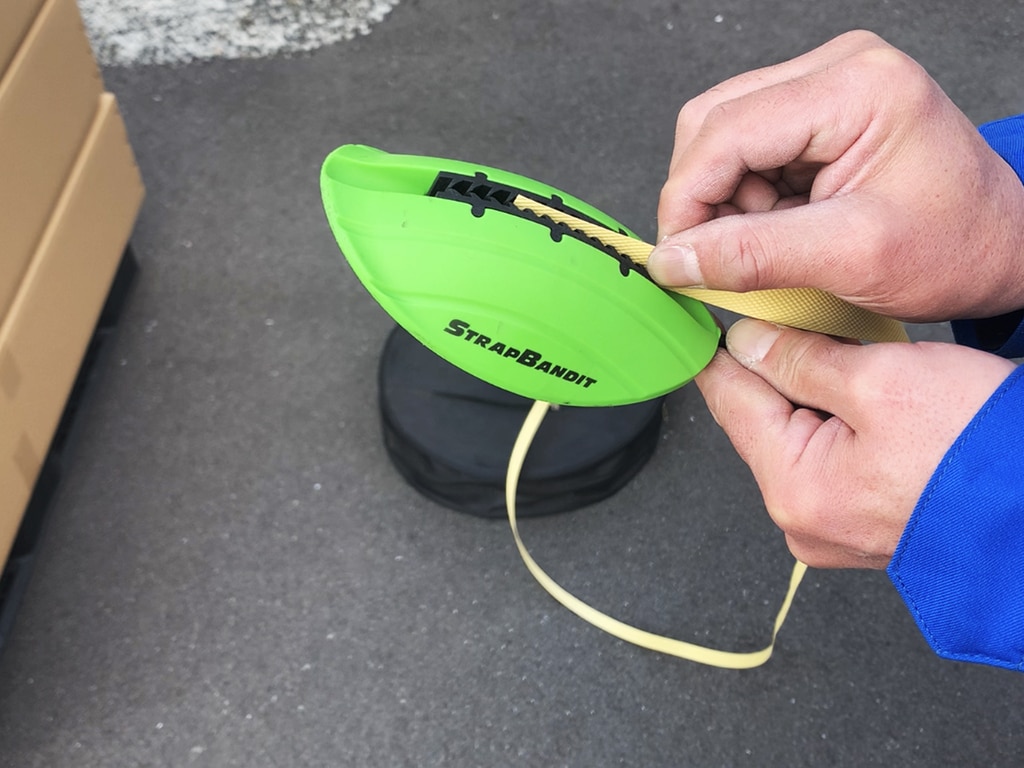 PPバンドを先端に固定し、パレットの間口に投げ込むだけ。