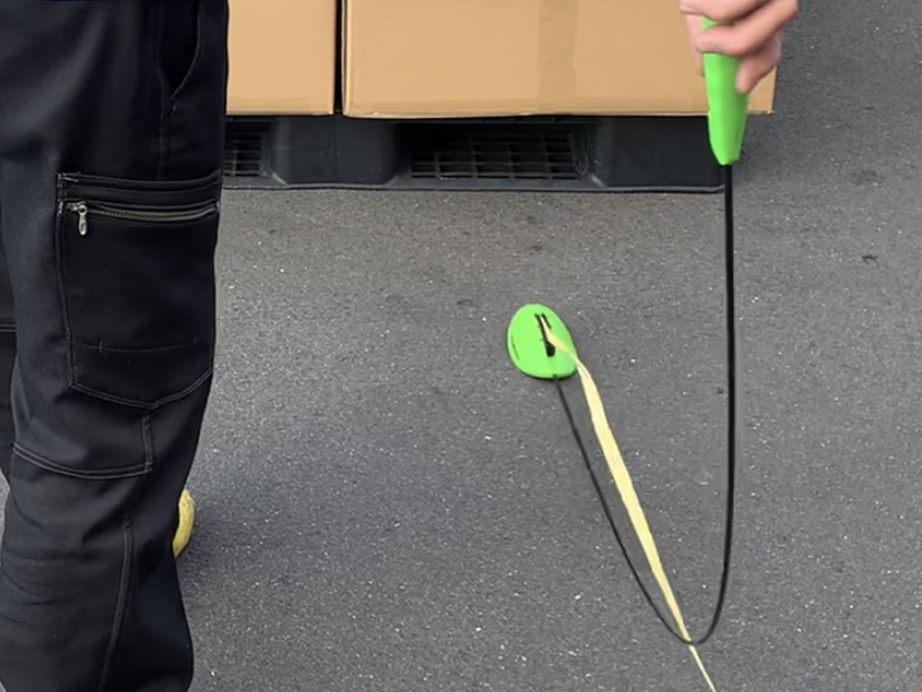 しなやかに曲がるので、立ったままパレット内に投げ入れるだけでPPバンドを通すことができます。作業者の腰の負担を大幅に軽減し、バンド通しにかかる時間を大幅に短縮します。